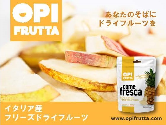 フリーズドライという特殊製法により添加物を一切使わない、ビタミンC等の栄養素がしっかり残ったスナック感覚のフリーズドライフルーツです。今後百貨店様、スーパー様、飲食店様にて展開予定です。イタリアにあるこの製造会社はSDGsの理念を大切にし、環境にも人にも優しい商品開発を志向する優良な会社です。