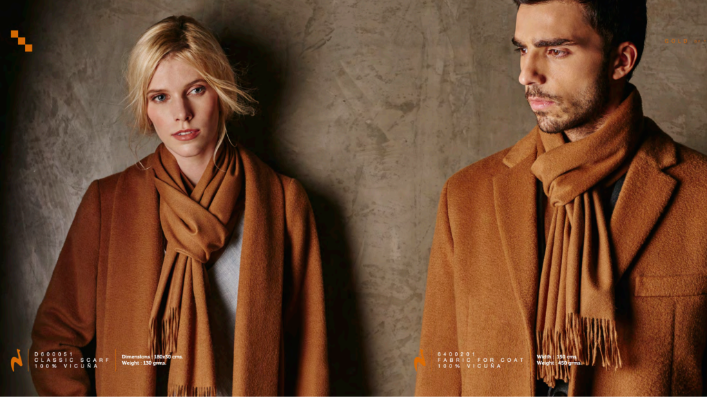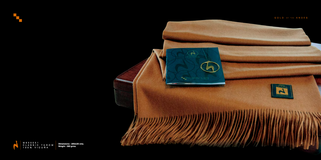ペルーよりビキューナ100%の製品を輸入しています。カシミヤより更に希少なビキューナはワシントン条約での規制もあり、流通量が極端に少なく一般的にはなかなか目にすることがないものです。繊維質が非常に細く(11~14 ミクロン)すばらしい肌さわりです。「神の繊維」と呼ばれ柔らかく、軽く保湿性に非常に優れています。是非手に取ってみていただきたい逸品です。